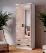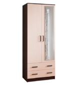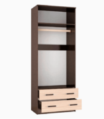 Шкаф оснащён двумя вместительными створками, которые обеспечивают удобный доступ к одежде и аксессуарам. Внутреннее пространство организовано с учётом современных потребностей: штанги для вешалок и ящики помогут поддерживать порядок и упрощают поиск необходимых вещей.